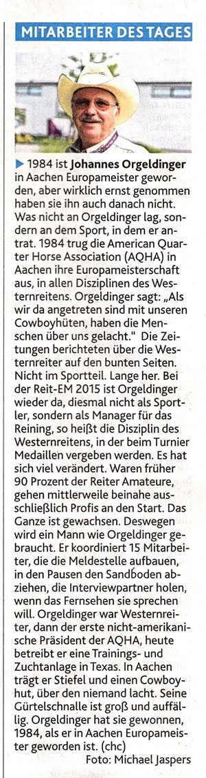 Für die vielen Glückwünsche im Quarter Horse Journal Deutschland, per Mail, Telefon oder im persönlichen Gespräch möchte ich mich recht herzlich bedanken, ich habe mich sehr darüber gefreut!